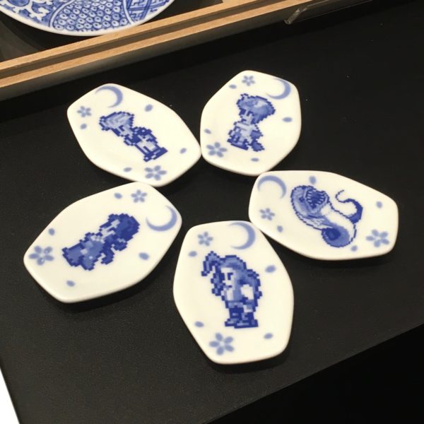 これが話には聞いてた有田焼の小皿! 主人公4人+ワラスボのセットだったんでしょうか? 凶悪な見た目のワラスボも、このサイズのドットになるとかわいい