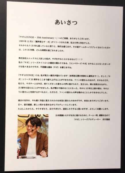 土日祝は出かけられない仕事をしているのでこういうことは諦めてたんですけど、今回は平日からやってくださったので、初めてサガのリアルイベントに行くことができました 以下素人写真で失礼します